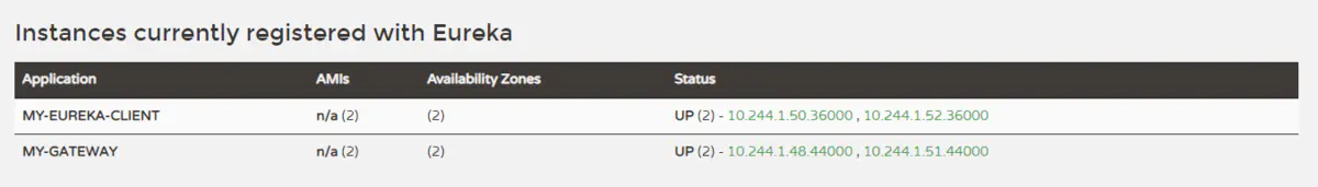 可以看到有2个 my-eureka-client 服务 和 2个 my-gateway 服务 注册到了 Eureka。