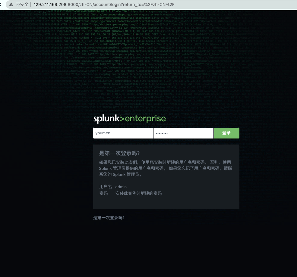 6.打开Web浏览器并键入以下URL以访问splunk Web界面。