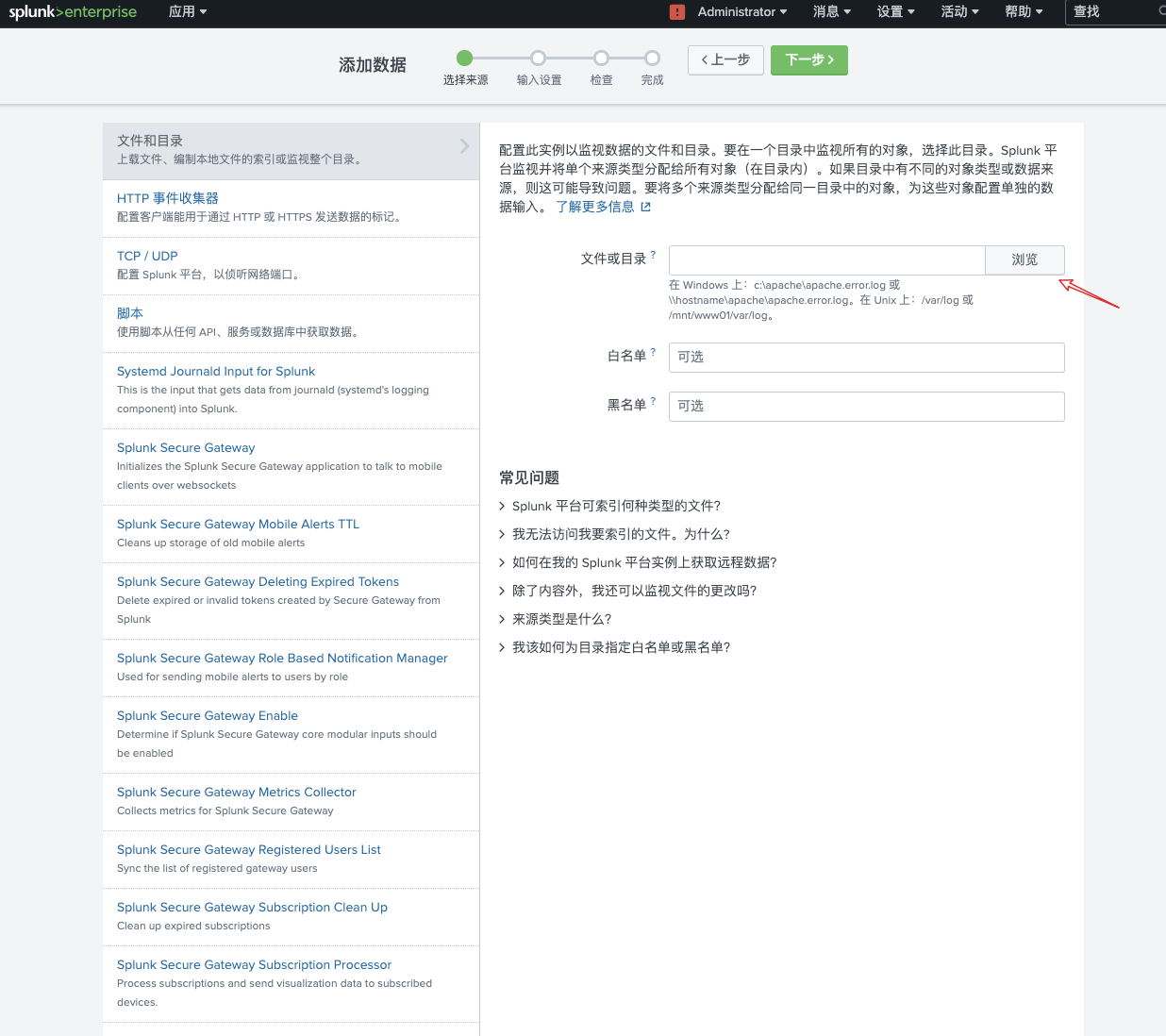 10.然后设置实例以监视数据的文件和目录。 要监视目录中的所有对象,请选择该目录。 要监视单个文件,请选择它。 单击“ 浏览”以选择数据源。