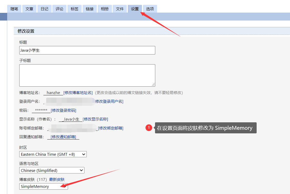 1. 修改博客的默认皮肤,所有样式都是基于该皮肤进行设置的