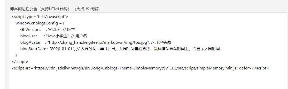 blogStartDate : "2020-01-01", // 入园时间,年-月-日。入园时间查看方法:鼠标停留园龄时间上,会显示入园时间