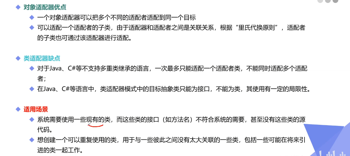 //不能直接连接网线的电脑 public class Computer { NetToUsb abapter; public Computer(NetToUsb abapter) { this.abapter = abapter; } public void net(){ abapter.requestHander(); } }