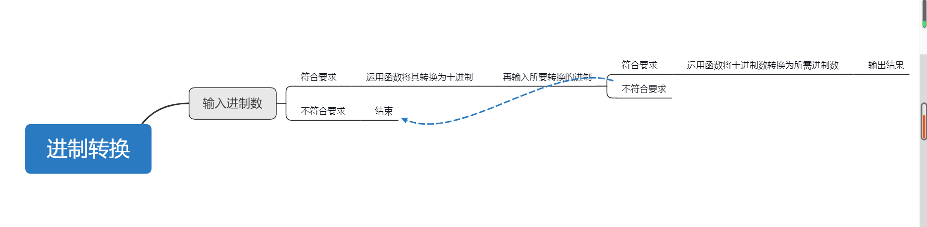 #include<stdio.h> #include<string.h> #include<stdlib.h> int TenNum(char a[], int B); //将输入的数字转换成10进制数 void Numchange(int m, int B); //将转换好了的10进制数转换为所需进制数 int TenNum(char a[], int B) { int len, i, num; int sum = 0; len = strlen(a); //求得字符串长度 for (i = 0; i < len; i++) { if (a[i] >= '0' && a[i] <= '9') num = a[i] - '0'; else if (a[i] >= 'A' && a[i] <= 'F') num = a[i] - 'A' + 10; sum = sum * B + num; } return sum; } void Numchange(int m, int B) { int n; if (m) { Numchange(m / B, B); n = m % B; if (n < 10) printf("%d", n); //小于10直接输出 else printf("%c", n + 55); //大于10转换成字符输出 } } return 0; }
