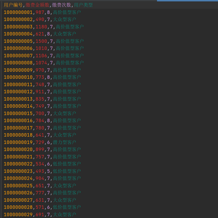 # coding=utf-8 import json import pandas as pd def getAndSet01(): df_dict = {} # 读取Excel文件 df = pd.read_excel('data.xlsx') # 替换Excel表格内的空单元格,否则在下一步处理中将会报错 df.fillna("", inplace=True) df_list = [] for i in df.index.values: # loc为按列名索引 iloc 为按位置索引,使用的是 [[行号], [列名]] df_line = df.loc[i, ['用户编号', '缴费日期', '缴费金额(元)']].to_dict() # 将每一行转换成字典后添加到列表 df_list.append(df_line) df_dict['data'] = df_list data=pd.DataFrame(df_list) flo=data['缴费金额(元)'].sum()/100 pin=len(data)/100 tic=[{"平均缴费金额":flo,"平均缴费次数":pin}] set=pd.DataFrame(tic) set.to_csv("居民客户的用电缴费习惯分析 1.csv",encoding="utf-8_sig", index=False) # def getAndSet02(): if __name__ =="__main__": getAndSet01() # getAndSet02()