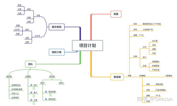 重点:样式非常好看,结构很丰富,看我上边第三张图,在同一个 mind map 里边,既有平铺样式(参考“里程碑”,适合用于时间节点),也有鱼骨图,有下接组织结构(参考“团队”),又有普通树状结构。而且很美观,目前有 Mac/iOS/Android 版本,在美观和易用性上全面超越原 XMind。