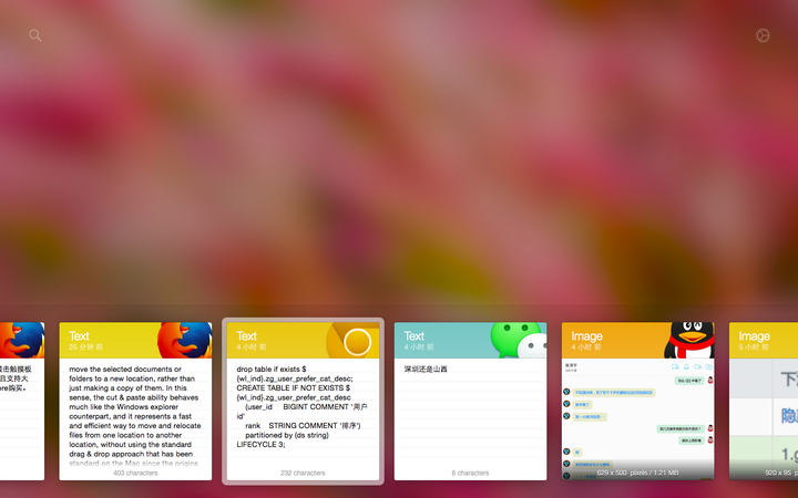- 可以搜索历史剪贴板都复制过什么,代码什么的不用担心会丢失。