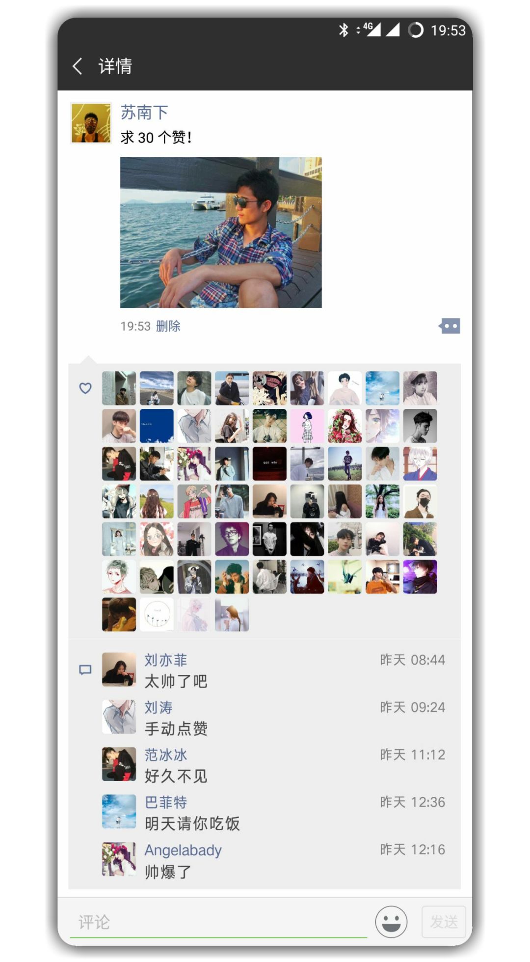 比如发一个要集 30 个赞的朋友圈,使用它很快就能获得 30 位好友点赞: