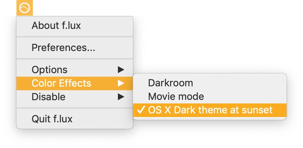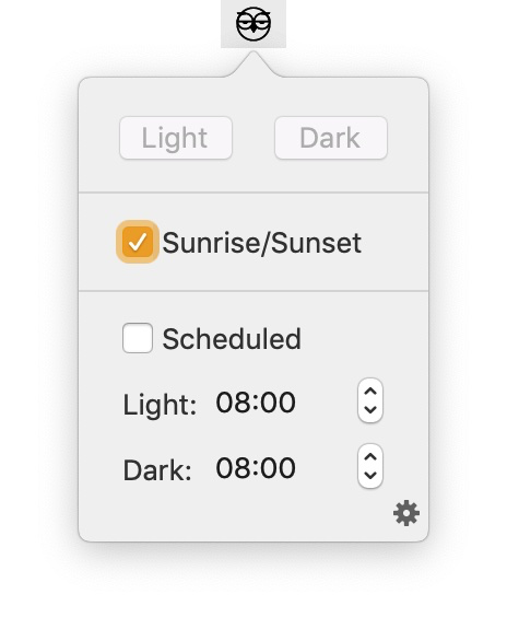 如果你只想让深色模式能够随着日出日落自动切换,但又不想系统色温也发生变化,那么你可以使用 NightOwl,它等于是剥离了色温调节功能的 f.lux。