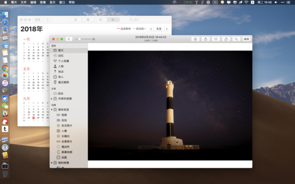 macOS Mojave 外观的配色模式可以根据日出日落自动切换了,同时系统自带的动态壁纸也会根据太阳高度自动切换。到了晚间,深色模式和深色的 Mojave 沙漠相得益彰。当然除了 Mojave 沙漠之外,还有很多和深色模式更搭的动态壁纸。