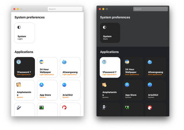 打开 Gray,选择想要控制的应用图标,像按下开关一样点击它,应用就会自动退出并重启,并变黑或者变白。应用图标的背景颜色以及下方一行小字,指示了它将保持在哪种外观模式。如果想要让它恢复成跟随系统变化,右键选择 reset 即可。你可以在 GitHub下载 Gray。