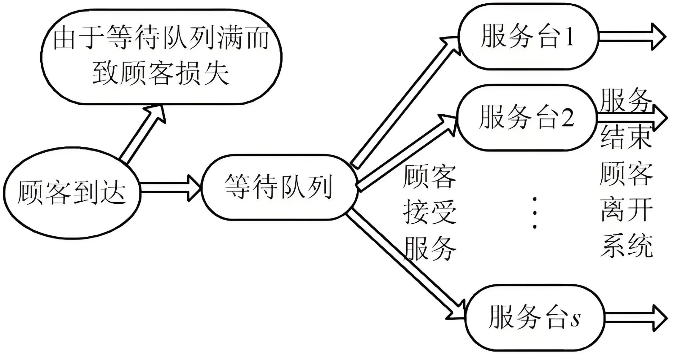 - 系统平均停留时间(\(W_s\)):顾客从进入到离开系统的总时间;