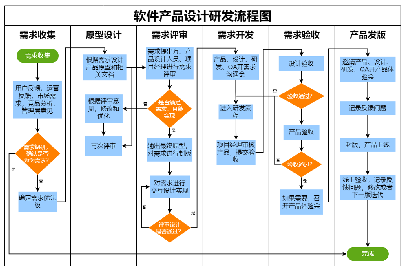 - 流程图与泳道图用于业务流程建模与任务分工;