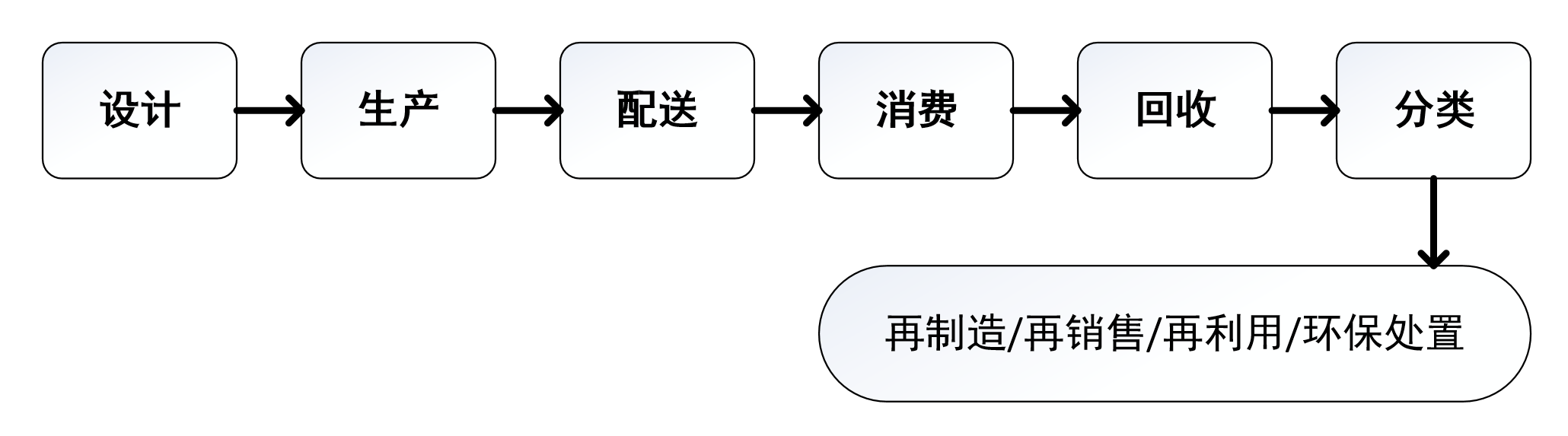 - 逆向链条:回收 → 检测与分类 → 再制造 / 再利用 / 绿色处置