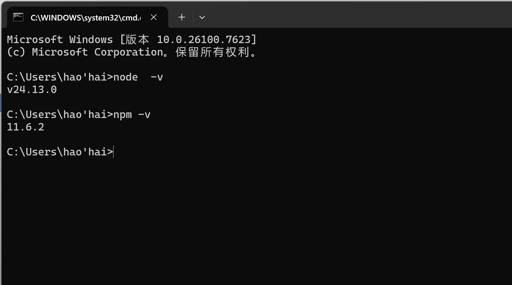 C:\Program Files\nodejs\ - 关闭并重新打开终端,再次执行验证命令