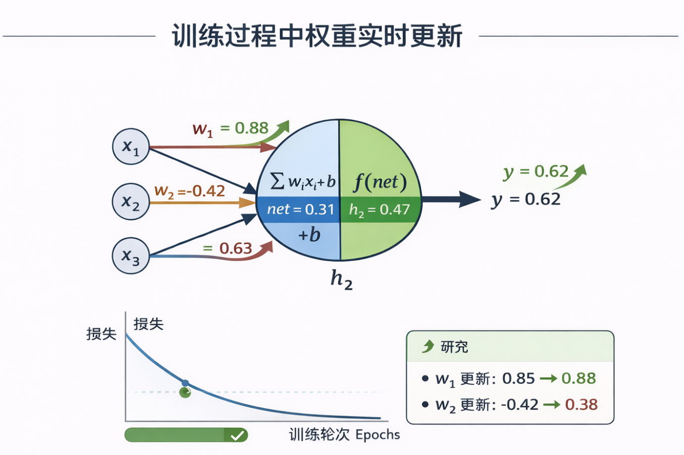 - 动态刷新预测图表和网络拓扑,实时显示权重变化和损失收敛。
