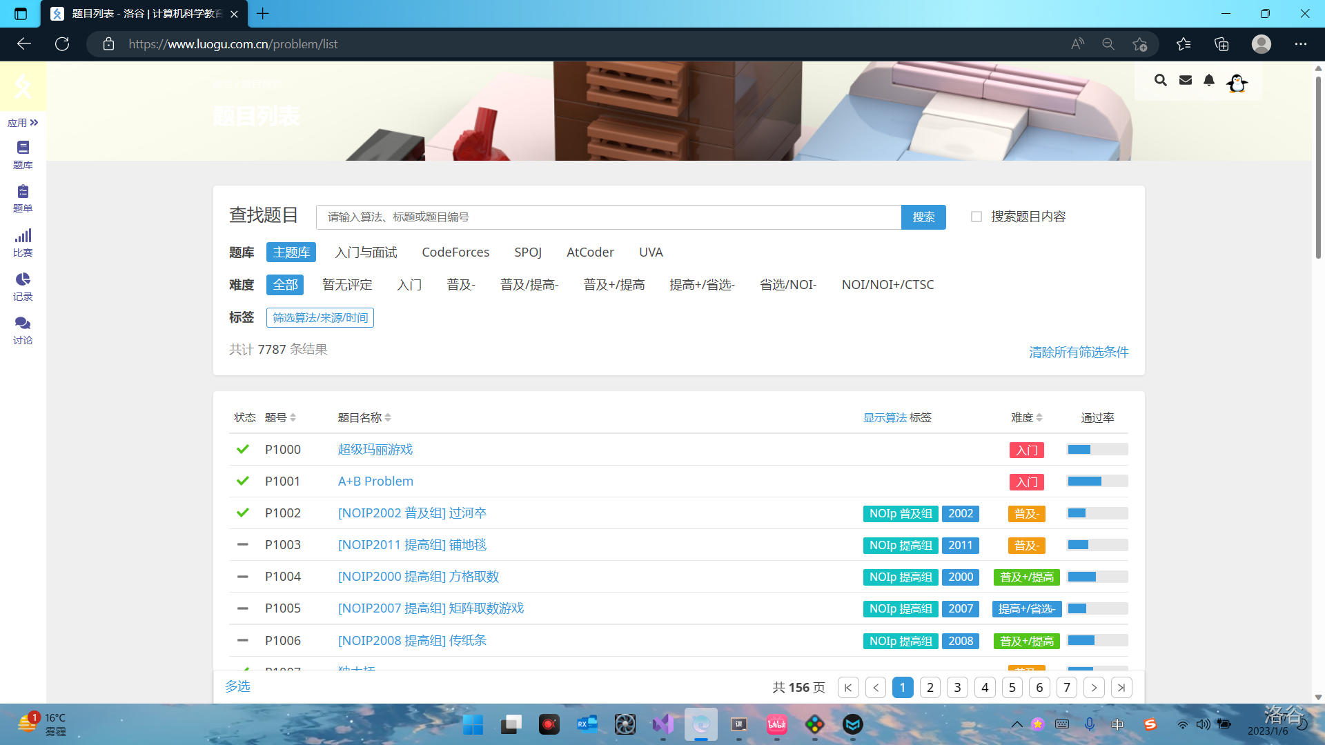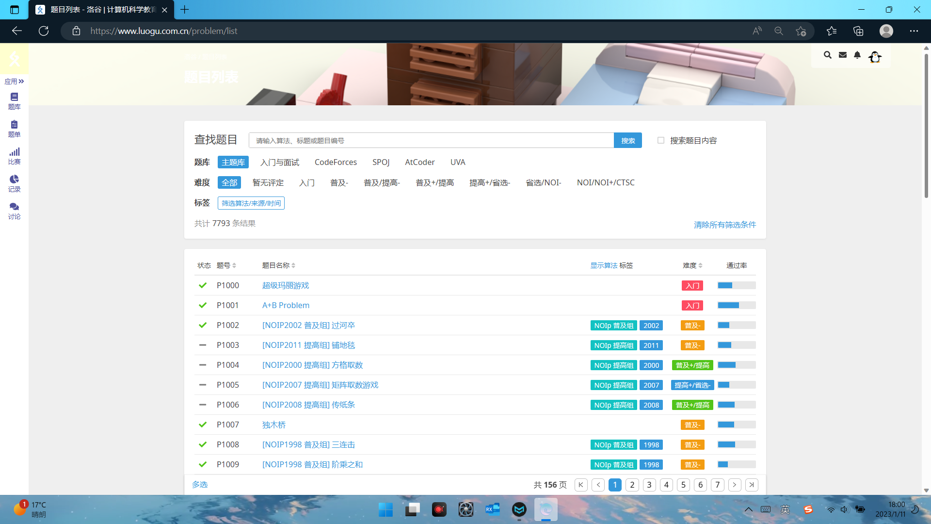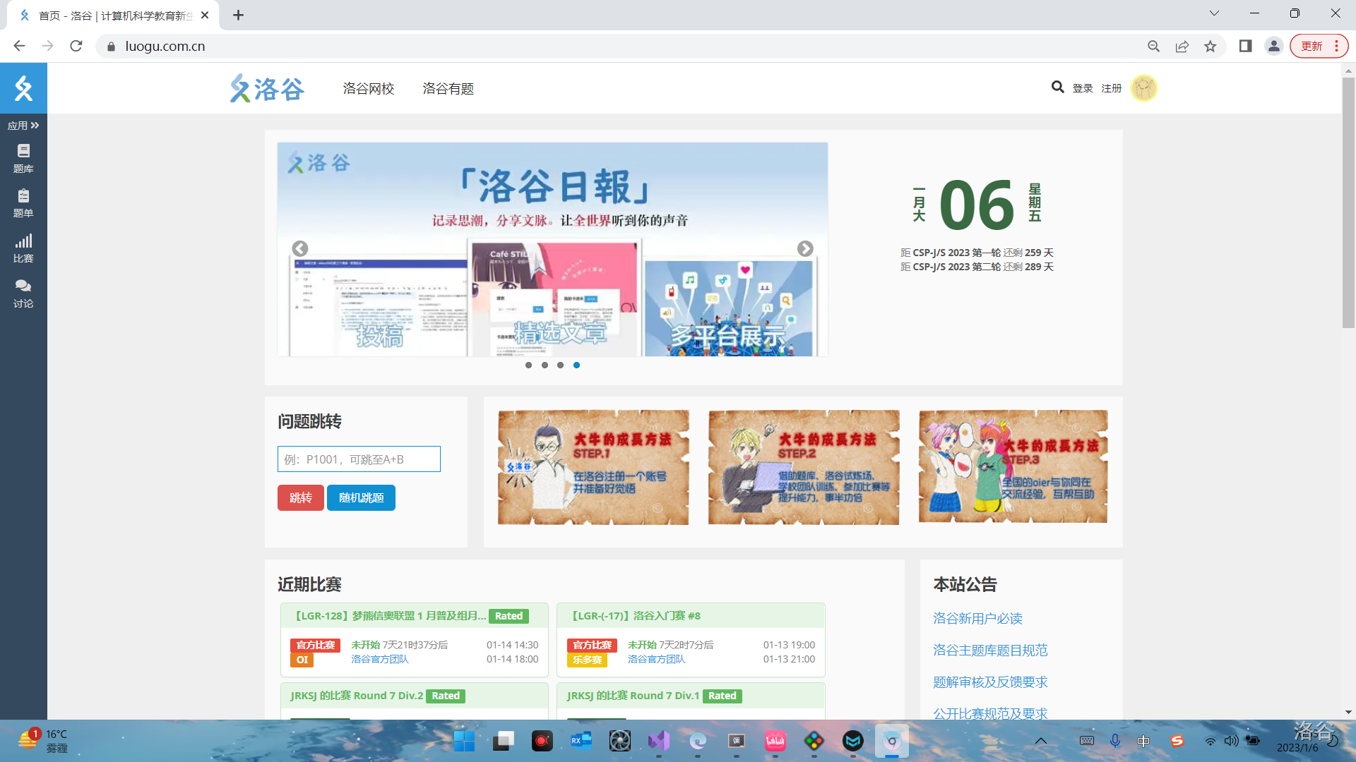 当你学完这些基础知识后,就可以去洛谷刷题了。首先,打开网站,是这个样子: