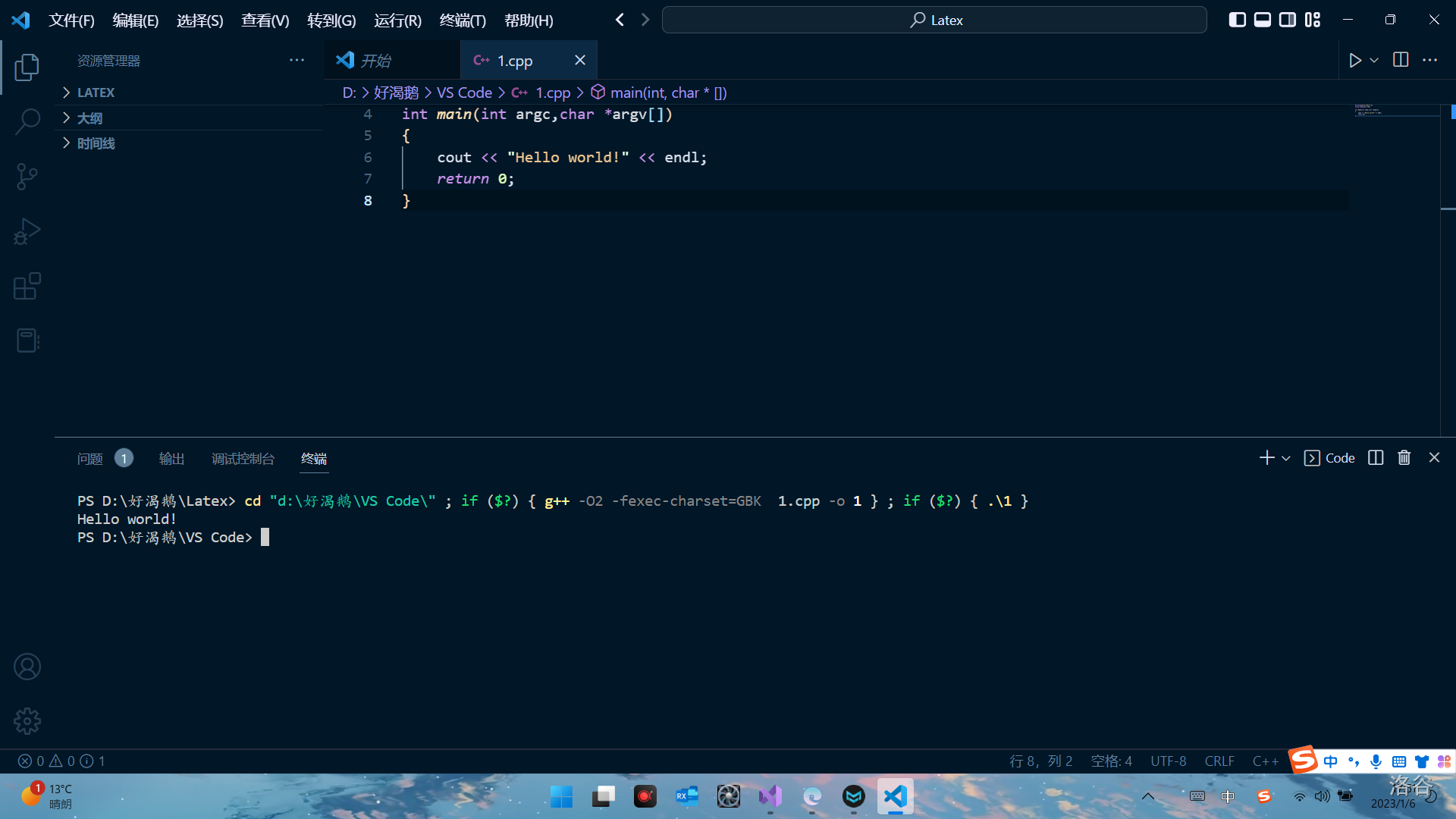在配完一个新环境的时候,为了检测配置有没有问题,我们一般都会以“输出Hello world”来检测。现在,我们就用 c++ 来写一个 Hello world 的程序扒 😄