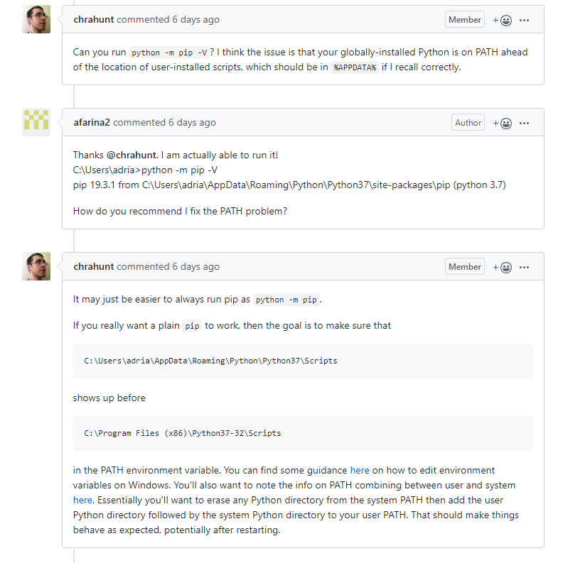 看完文档你基本清楚,解决思路是环境变量的问题,安装好的目录pip不可用。