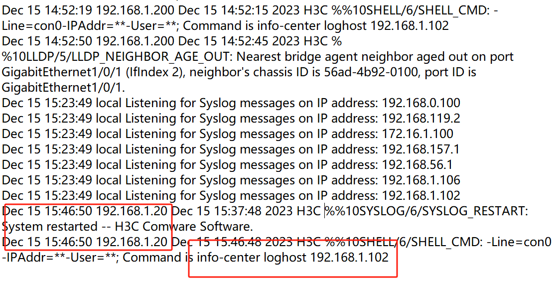 - info-center loghost X.X.X.X //使日志信息发送给指定日志主机