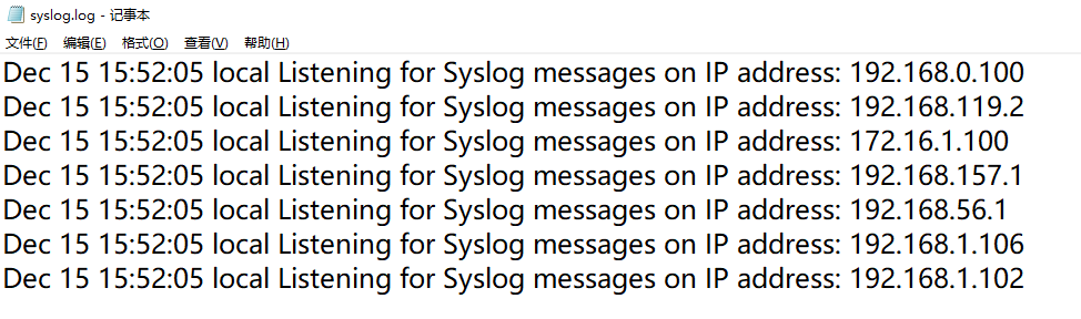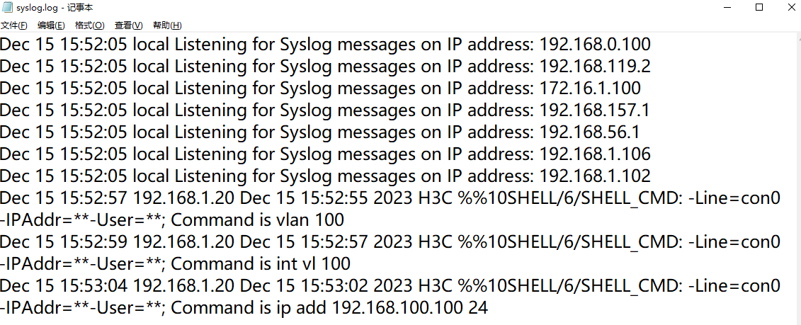 - 查看日志主机指定目录下生成的syslog文件,这个文件会持续添加内容,将设备日志内容同步进来