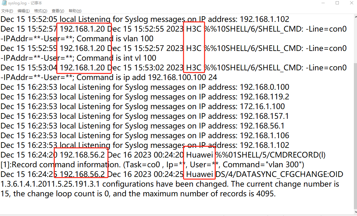 查看syslog内容,华为的日志也成功上传了,搞定