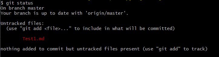 当在文件中新建一个Test1.md文件的时候,此时再使用git status命令,将会看到一个新的未跟踪的文件: