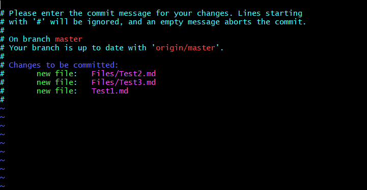 以这种方式会启动文本编辑器以便输入本次提交的说明,(默认会启用 shell 的环境变量 $EDITOR 所指定的软件, 一般都是 vim 或 emacs)具体设定编辑软件在后面会讲解。