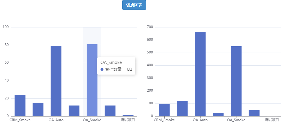 首先查看对应的效果图,切换图表可展示为对应的柱状图,图表中的数据来源是Django的Queryset查询结果