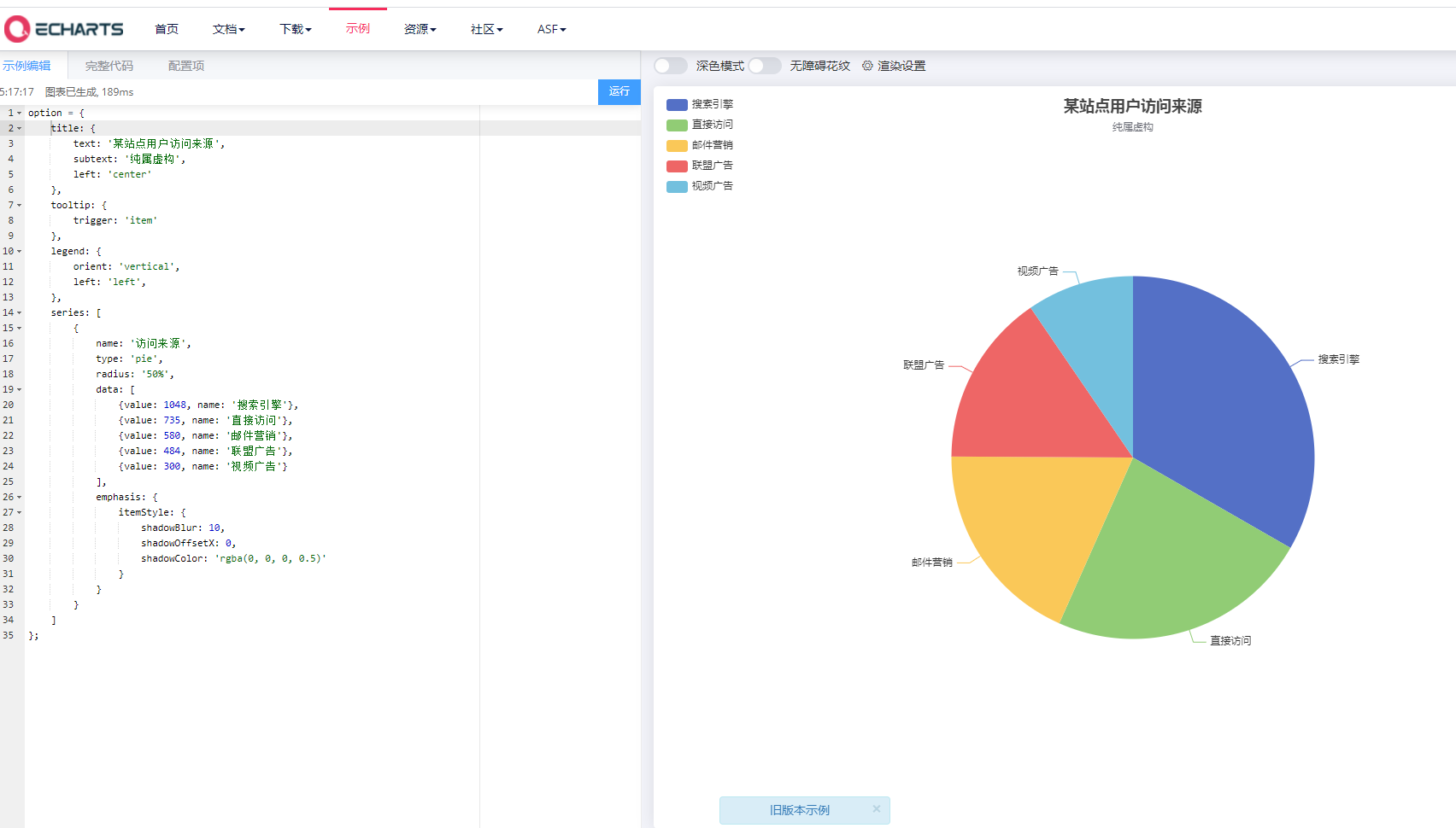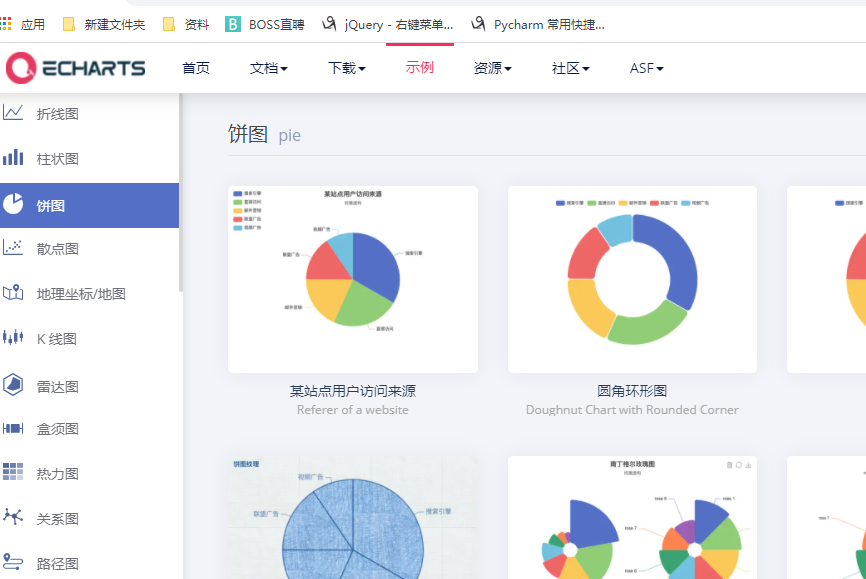 2、在 echarts官网寻找想要的图型示例,点击图形查看示例编码,复制对应的option
