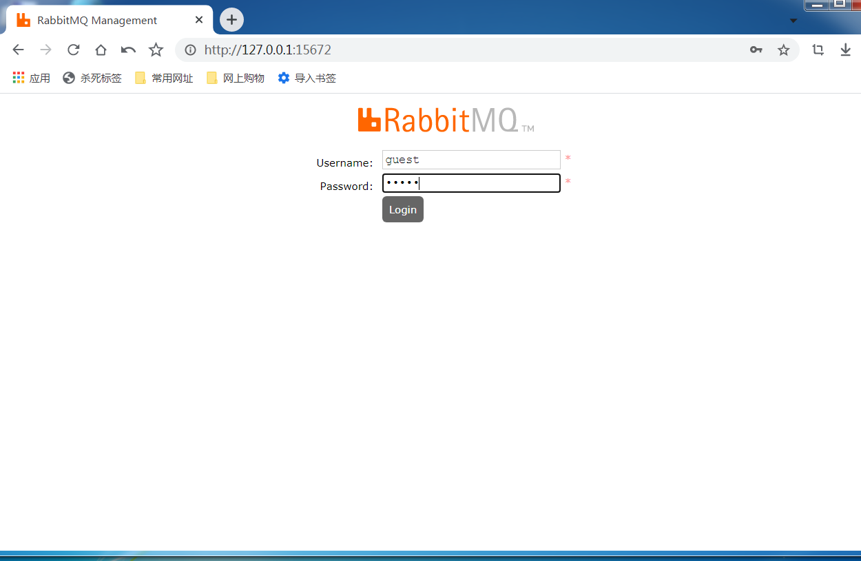9.登录管理工具在浏览器输入地址http://127.0.0.1:15672/,进入管理页面,账户密码都是guest