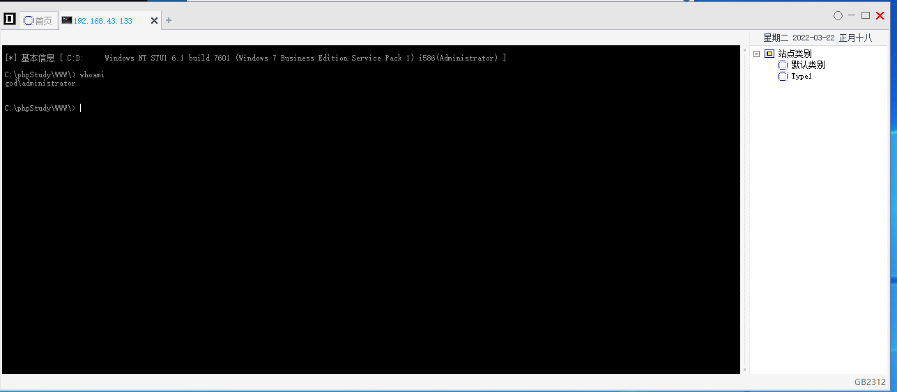 都能远程执行命令,并且都是system权限,可以添加影子账户,再开3389端口,做隧道连接登录,后面就自行发挥了
