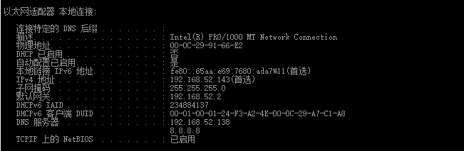 ipconfig /all查看192.168.52.138的网卡