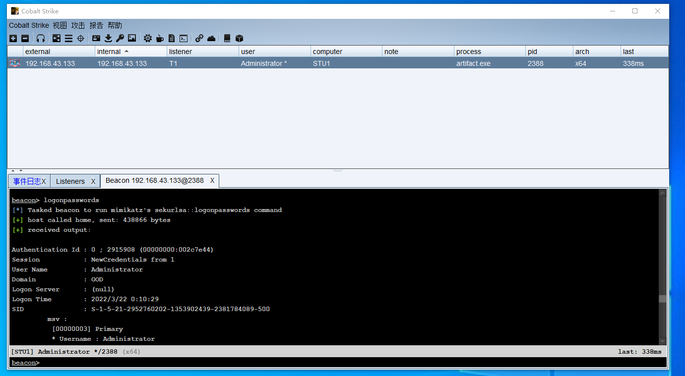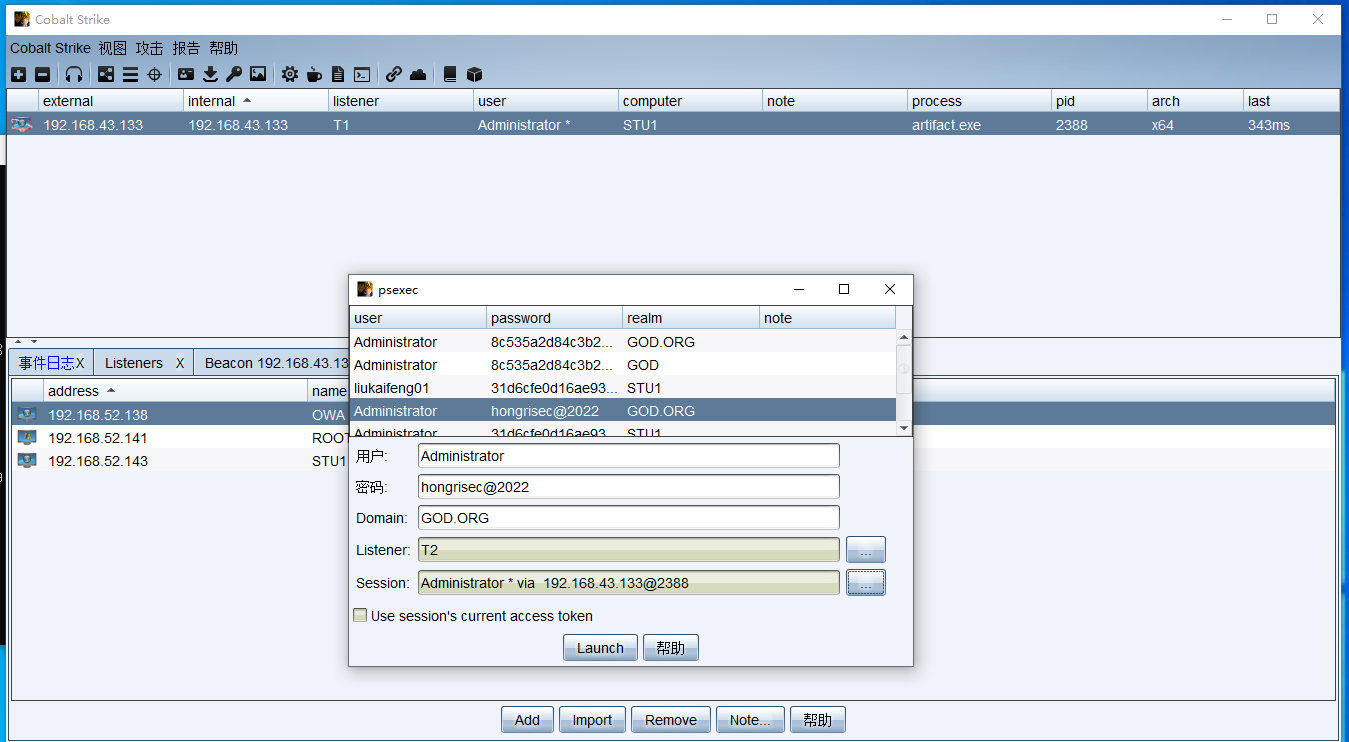 psexec在192.168.52.138上登录域管凭证