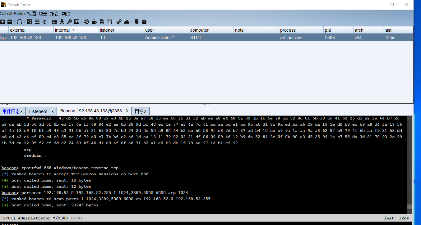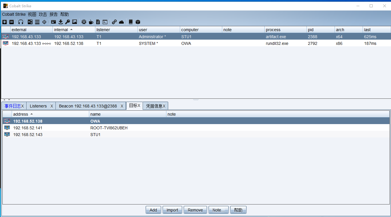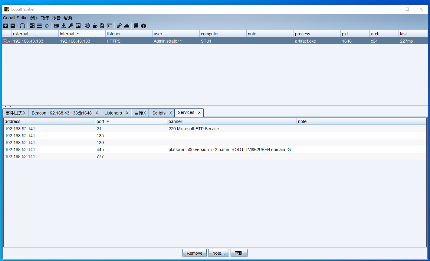 中转beacon 监听IP为WEB服务器 域内网卡IP192.168.52.143就可以跟域内主机通信