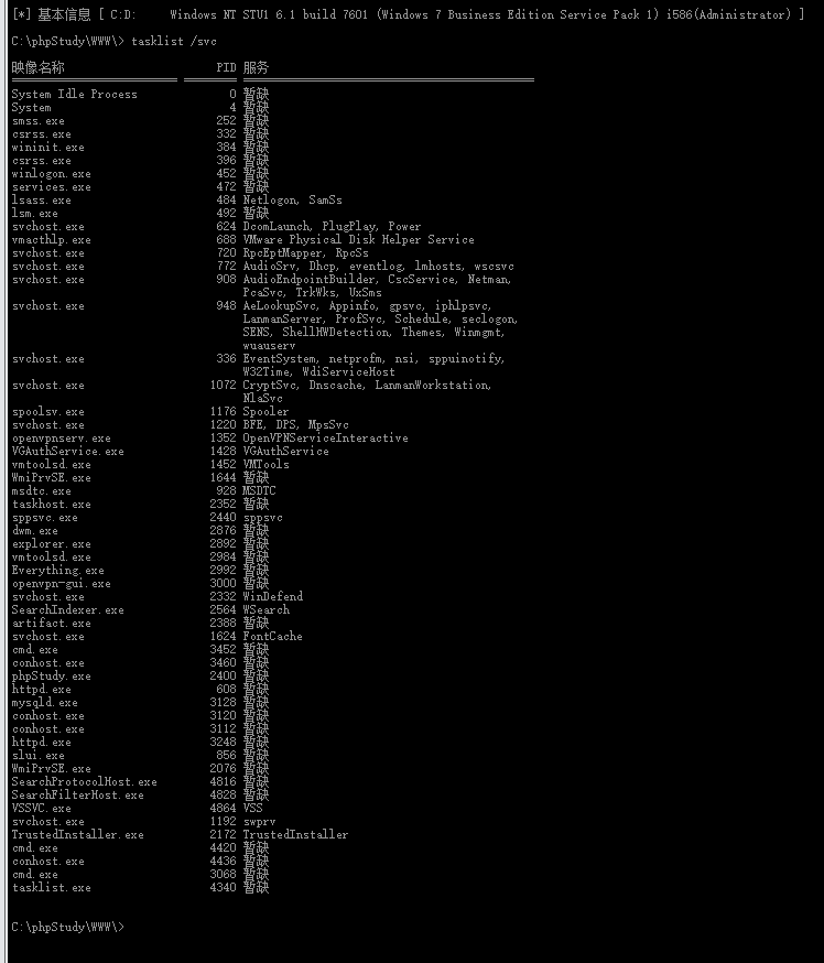 tasklist /svc查看进程 对比有无杀软