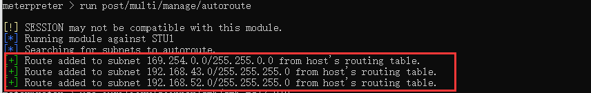 run post/multi/manage/autoroute自动添加路由