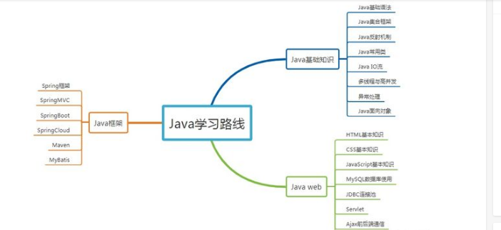 如图所示,第一部分当然是打好Java基础了,能够把Java基础学会学懂,那么一条康庄大道就会迎面而来了。
