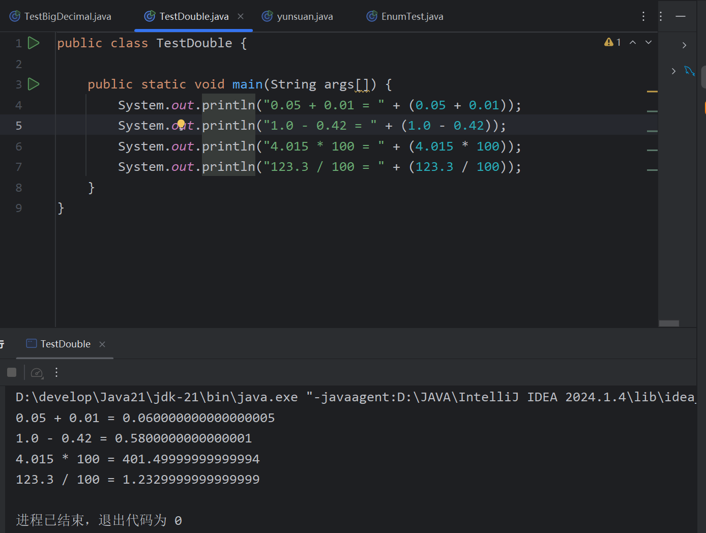 System.out.println("1.0 - 0.42 = " + (1.0 - 0.42));