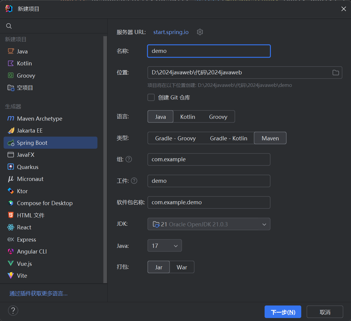创建springboot项目