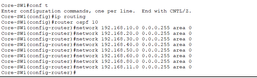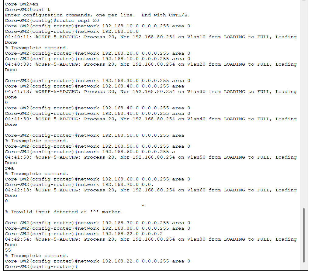 通过搭建企业园区网,掌握了 三层架构(核心层、汇聚层、接入层)的划分与配置,理解了 VLAN、Trunk、HSRP 的作用。成功配置 OSPF 实现多区域路由互通,并通过 show ip ospf neighbor 验证邻居关系。