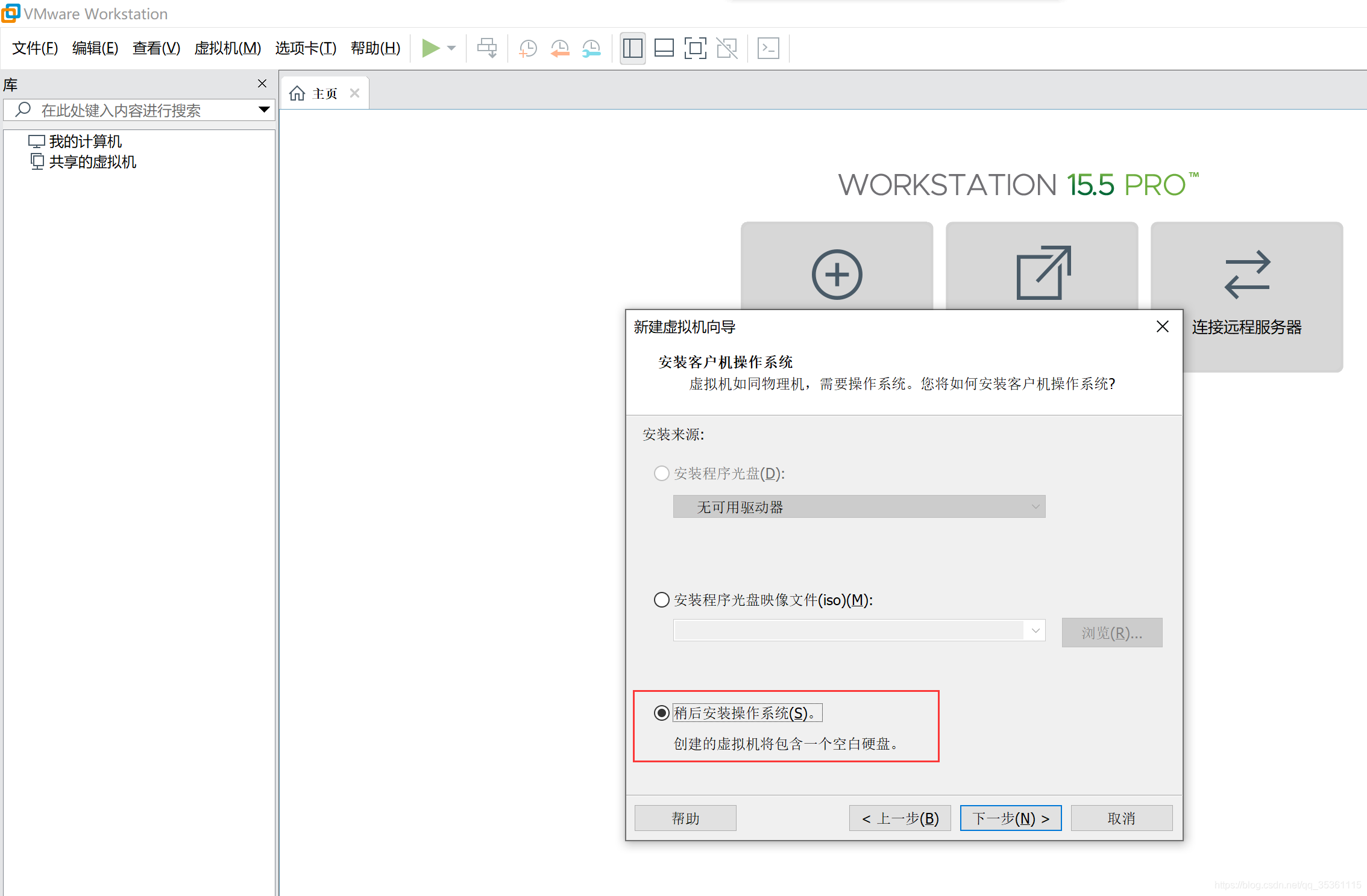 4.这里我们选择 稍后安装操作系统,继续点击下一步,跳转如图: