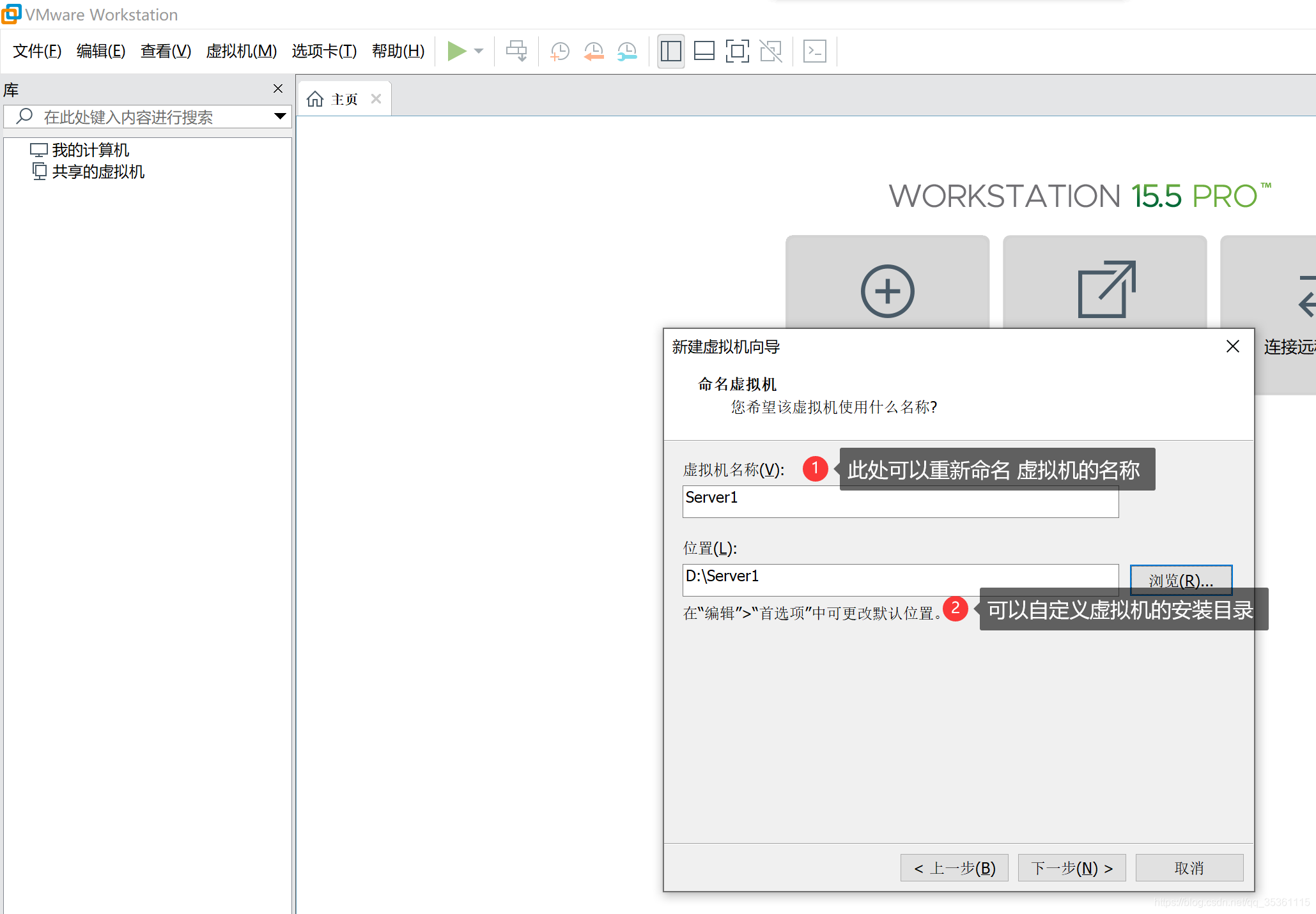 然后点击下一步:在这里我们可以重新命名虚拟机的名字和 位置