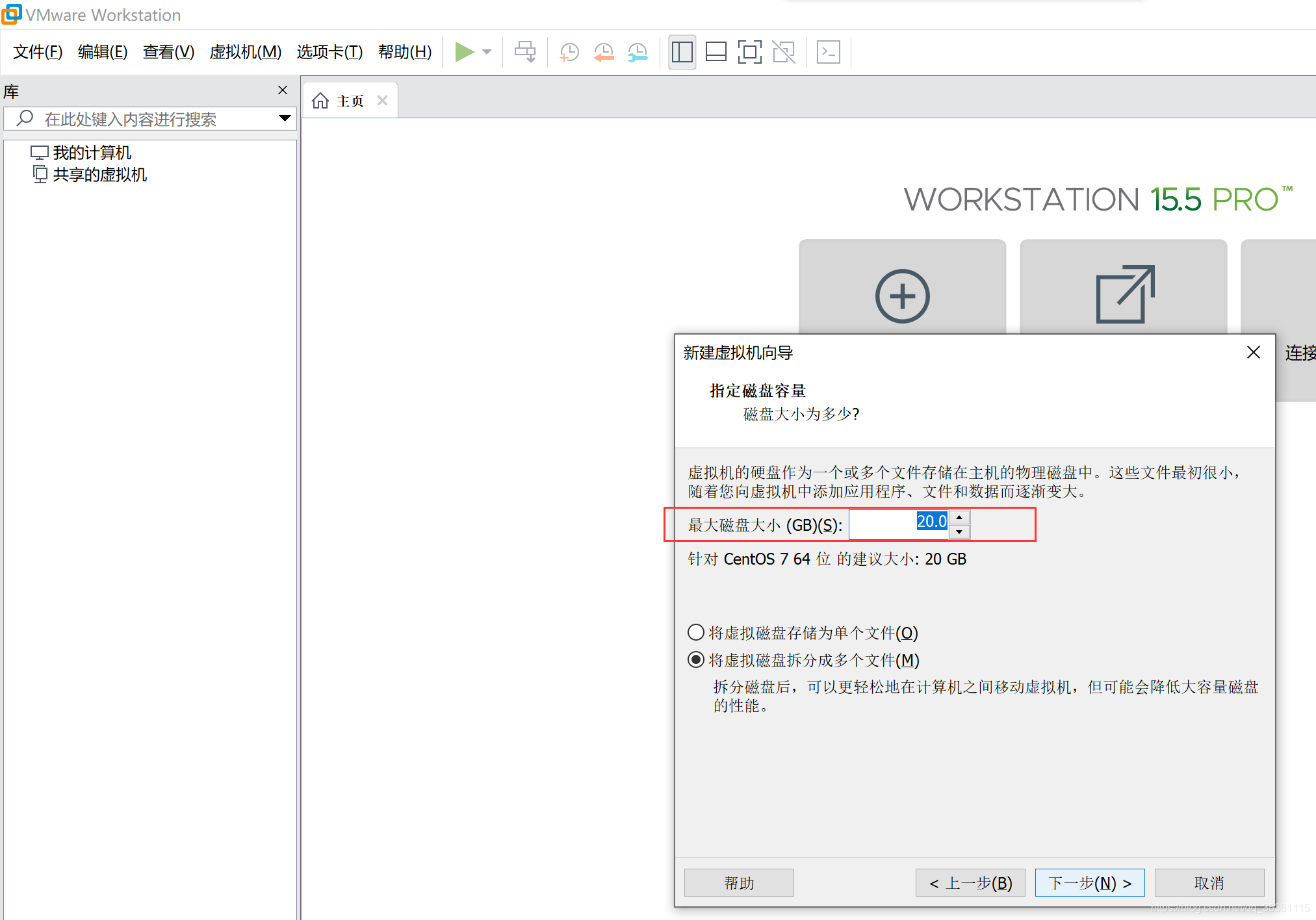 5.点击下一步,我们设置虚拟机的磁盘容量,这里这是设置为默认值