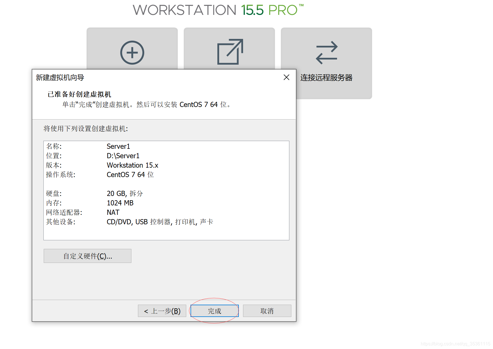 点击完成,此时,新建虚拟机就结束了,稍后我们将安装 系统。