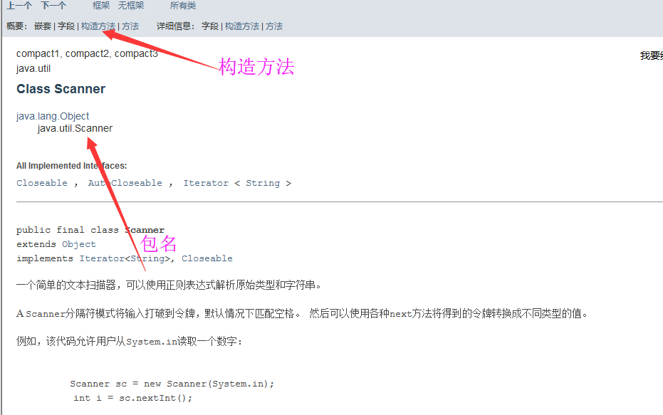 我们使用jdk帮助文档主要关注的有三点:包、构造方法、方法摘要