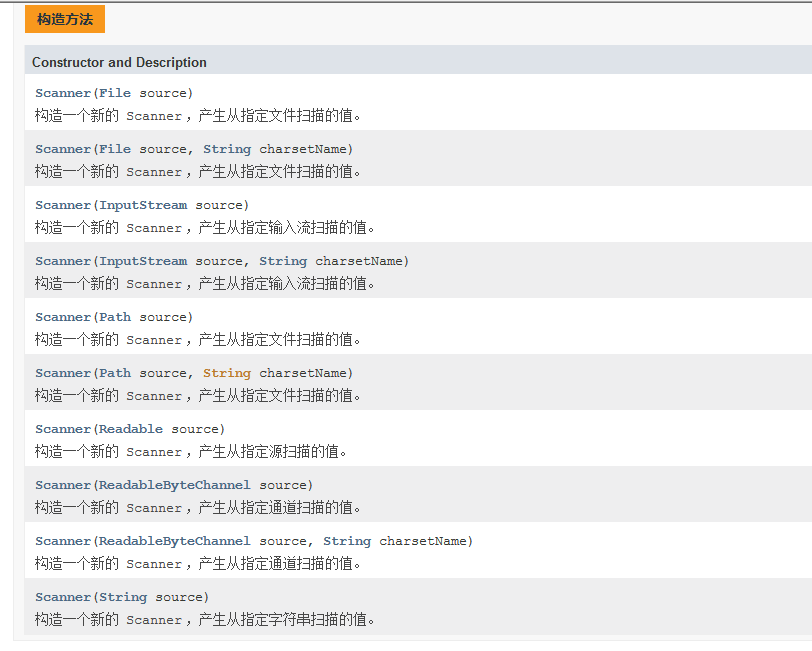 在构造方法后面,紧接着就是方法摘要,在这里,我们首先要查看他们的功能,找到我们所需要的方法,然后查看参数列表以及返回值