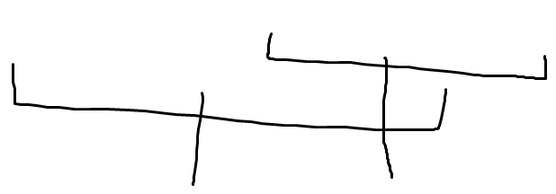 他能通过设 \(f_i\) 表示前 \(i\) 个已经被炸死的最小代价来求解吗?不可以!因为有时候就是要先做右边然后再做左边的(如上),所以顺序是不对的。所以我们必须保留关于使用的 creeper 的信息。那么,我们可以按直觉,保留最右边那个 creeper 吗?可以,不可能存在不和最右边那个互炸却和之前的互炸的可能性,容易通过分类讨论证明。