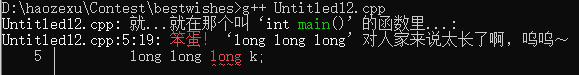 进行本配置后,Dev-C++ 将不能在编译出错时自动定位到错误位置,请手动点击编译器日志里错误的行,这会跳转到错误位置,同时错误日志会丧失高亮,对使用体验有一定影响,除非更改 Dev-C++ 代码或者翻译文件(即把“杂鱼~”、“笨蛋!”和“才……才不会告诉你”换回去),否则无法解决此问题。