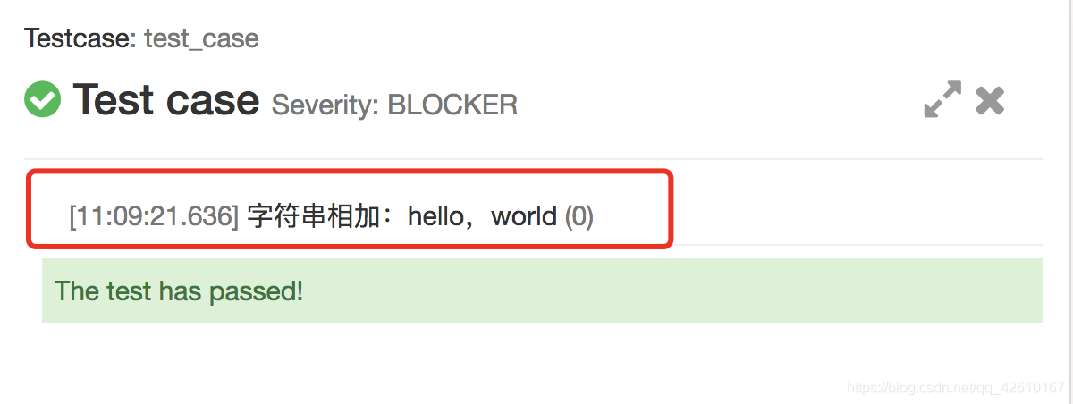 # -*- coding: utf-8 -*- # @Time : 2018/8/17 上午10:10 # @Author : WangJuan # @File : test_case.py import allure import pytest @allure.step("字符串相加:{0},{1}") # 测试步骤,可通过format机制自动获取函数参数 def str_add(str1, str2): if not isinstance(str1, str): return "%s is not a string" % str1 if not isinstance(str2, str): return "%s is not a string" % str2 return str1 + str2 @allure.feature('test_module_01') @allure.story('test_story_01') @allure.severity('blocker') def test_case(): str1 = 'hello' str2 = 'world' assert str_add(str1, str2) == 'helloworld' if __name__ == '__main__': pytest.main(['-s', '-q', '--alluredir', './report/xml'])